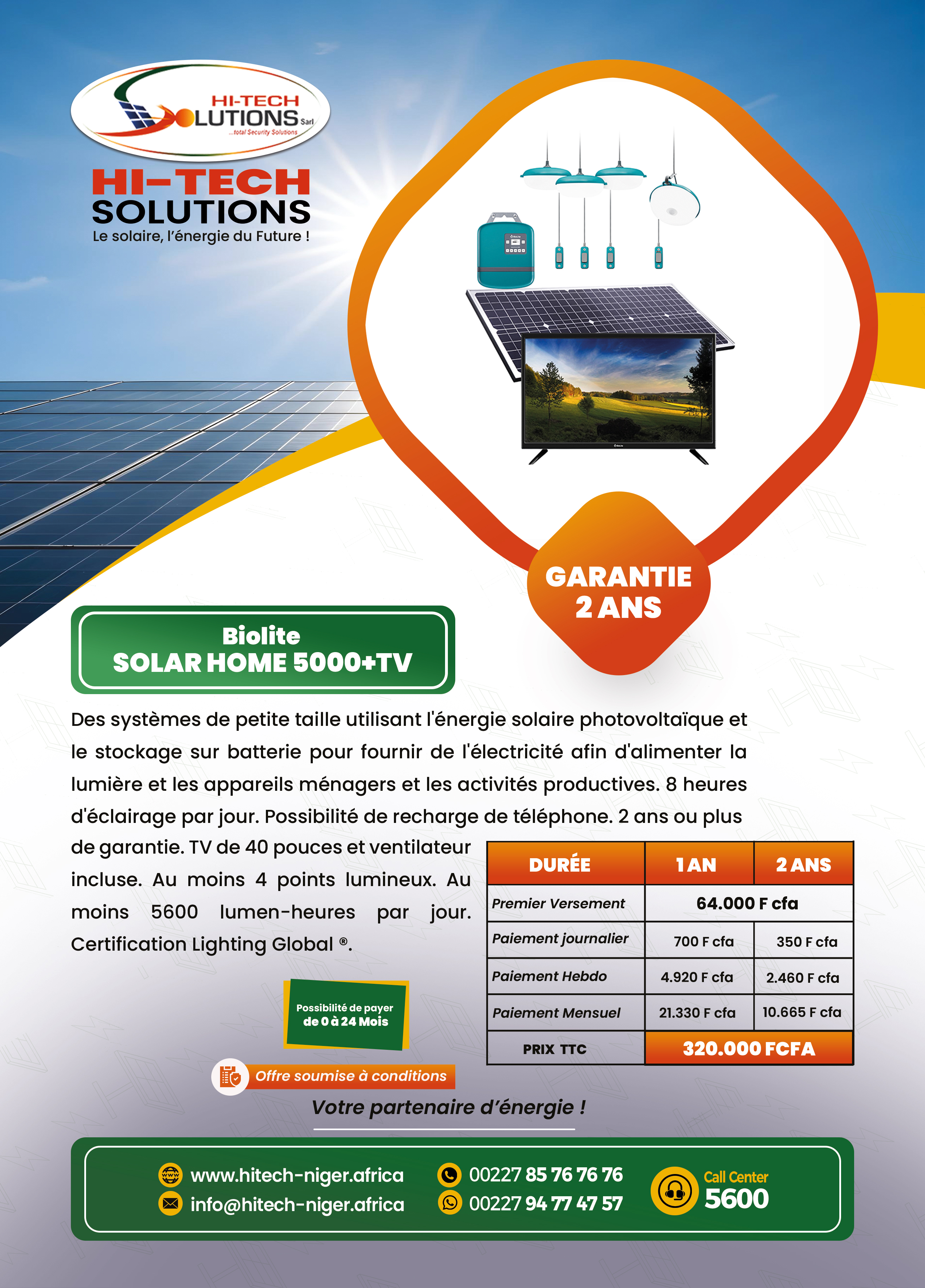 Sur 24 mois - Total: 320 000 FCFA